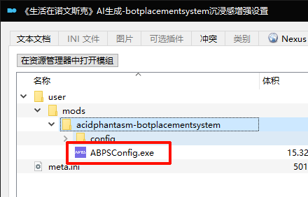《生活在诺文斯克》整合包是通过[6]Acid的AI生成系统-botplacementsystem来管理AI刷新。因为对这个MOD设置进行了调整,设置文件放在了《生活在诺文斯克》AI生成-botplacementsystem沉浸感增强设置中。 玩家如果要对AI数量进行调整,请直接双击下图中的程序,不用通过MO2执行: