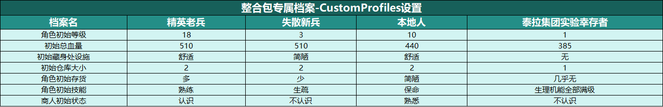- 说明:请看这篇文章:3.《生活在诺文斯克》Live in Norvinsk的四种专属角色简介,从0.9.5测试版起,它和[5]伪无缝地图-通往塔科夫之路-Trap-PathToTarkov一起为整合包玩家提供四种不同的开局角色体验: