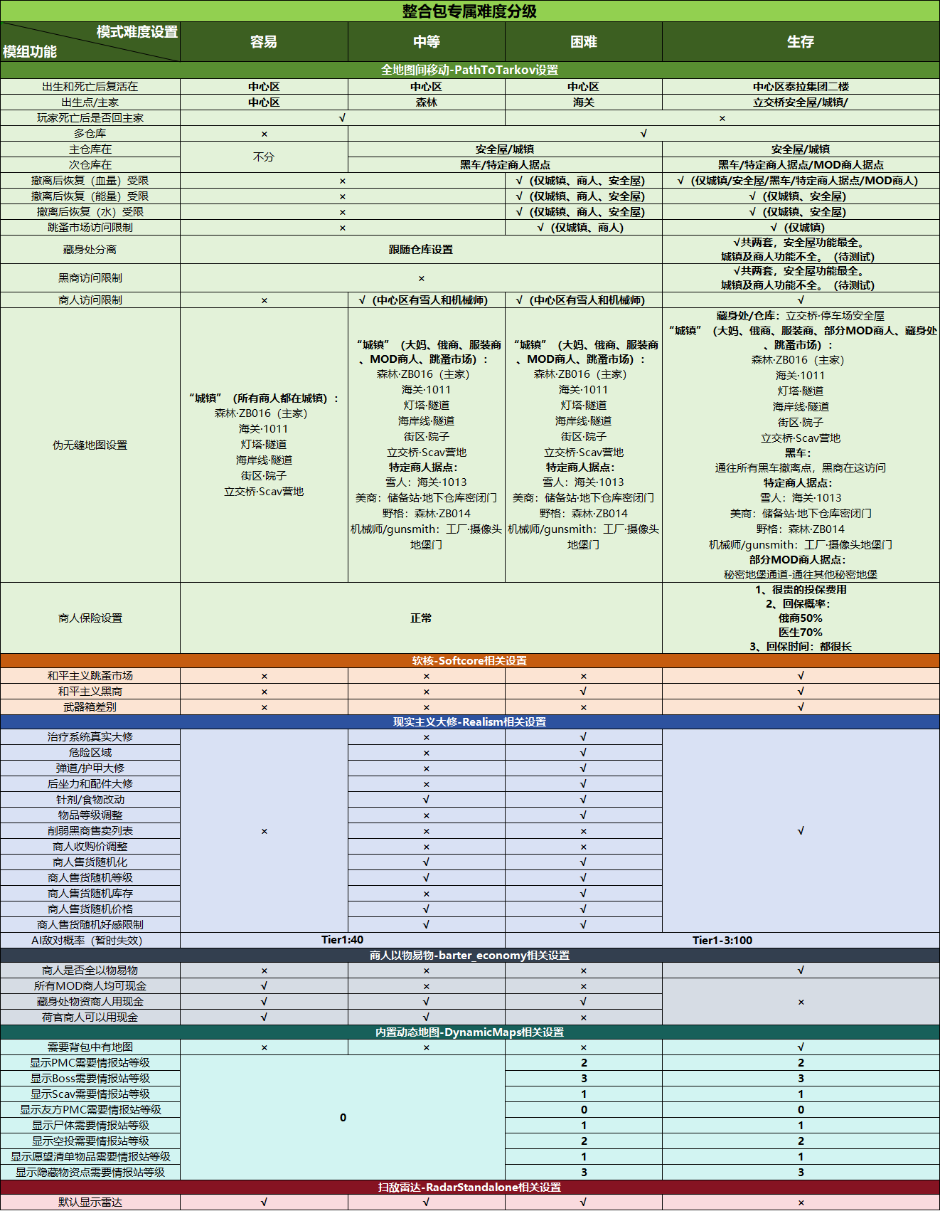 - 整合包里除了商人据点/城镇等特殊撤离点,其他的过路点都尽量不要放东西。大概率会炸档。