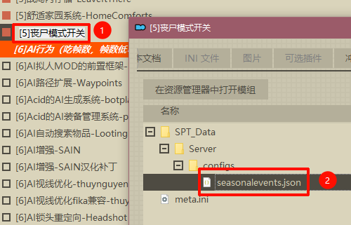 现实主义有服务端/客户端两种配置方式,服务端配置程序需要在游戏外开启配置: 在MO2的右栏“数据”中展开user\mods\SPT-Realism文件夹即可发现Realism-Mod-Config-GUI.exe: